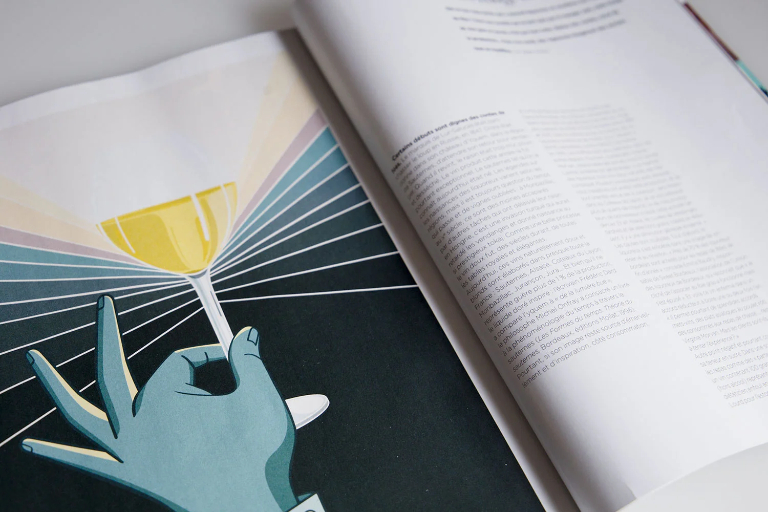 Selected editorial illustration for M le magazine du Monde. The article is about wine and bringing new light on vins liquoureux.