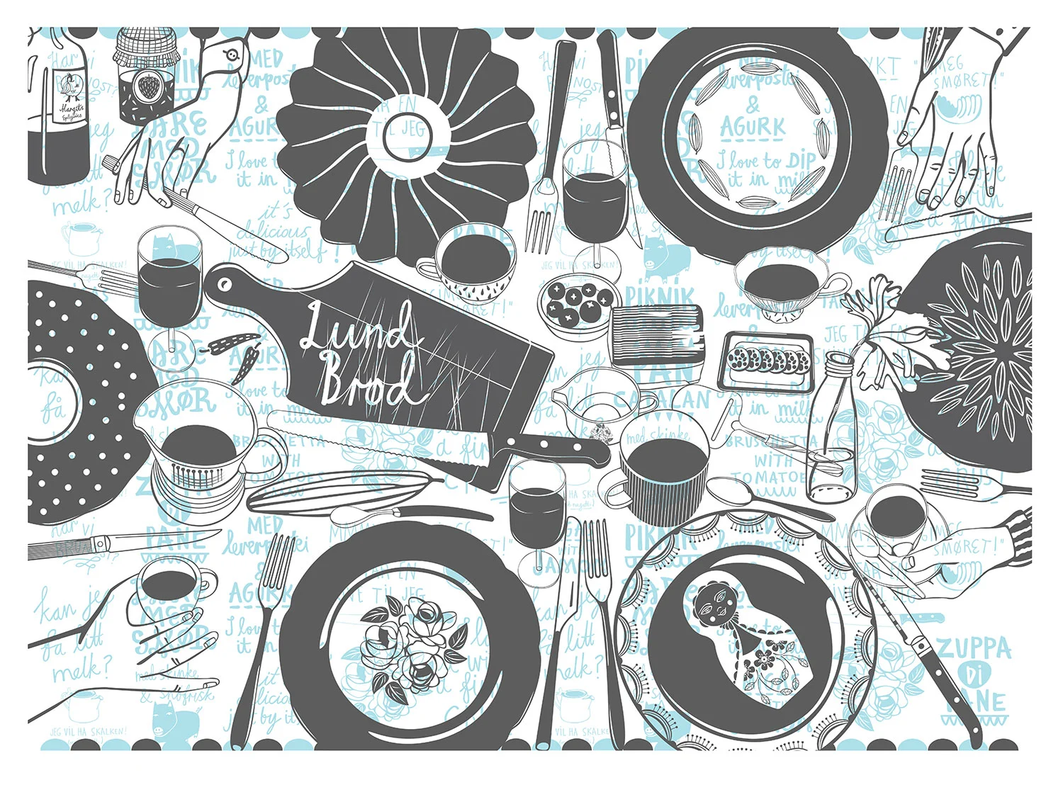 Illustrated visual identity for micro bakery Lund Brød in Toten, Norway.