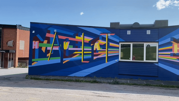 Commissioned by Larvik Kommune. Mural for Tjodalyng School titled What if everything is possible?